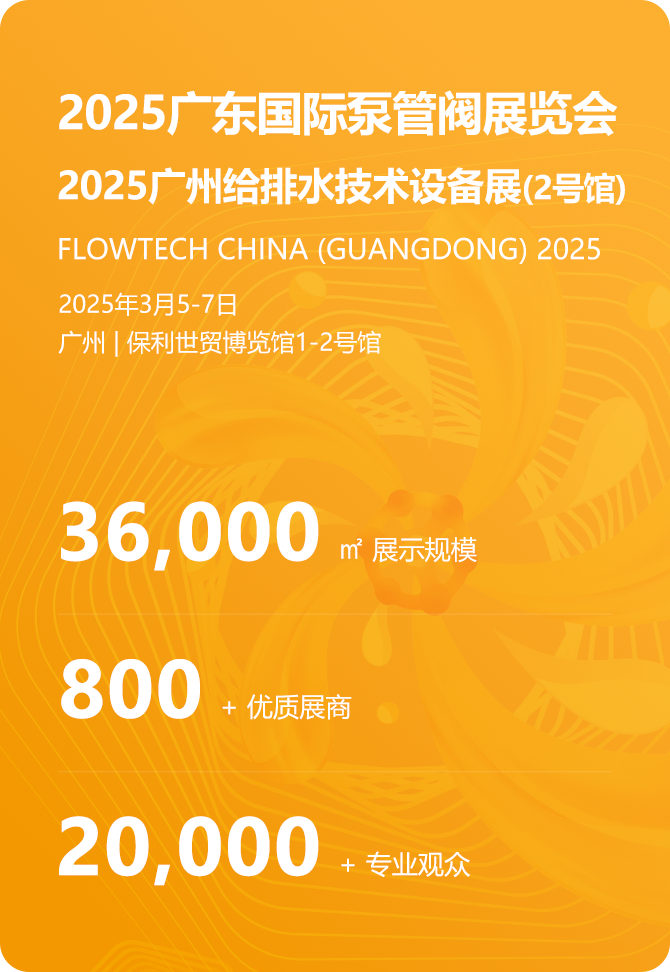 第九屆廣東泵閥展將攜手同期廣東水展規(guī)模達(dá)36,000㎡,預(yù)計(jì)匯聚800多家展商,橫跨工業(yè)、市政、民用三大領(lǐng)域,展示泵、閥門、智能供水設(shè)備、執(zhí)行機(jī)構(gòu)、管道/管接件、泵閥配套產(chǎn)品、污水成套設(shè)備等超2萬(wàn)件產(chǎn)品,將吸引超20,000名專業(yè)觀眾到場(chǎng)參與。各種新技術(shù)、新產(chǎn)品、新活動(dòng)輪番登場(chǎng),為來(lái)自國(guó)內(nèi)外的優(yōu)質(zhì)商家、買家、專業(yè)觀眾打造一個(gè)集買家會(huì)晤、商貿(mào)洽談、新品發(fā)布、高峰論壇、媒體曝光、現(xiàn)場(chǎng)交易等功能為一體的高品質(zhì)泵閥商貿(mào)平臺(tái)!